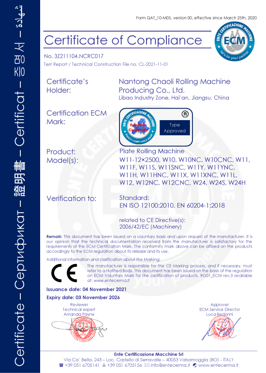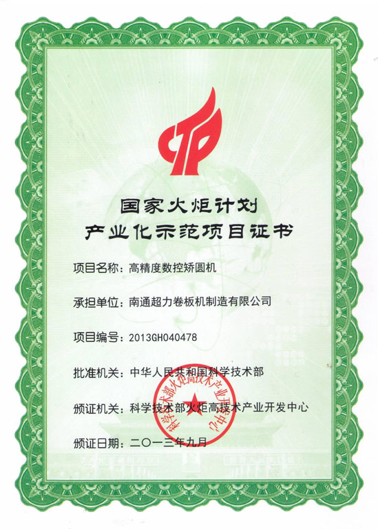 南通超力卷板機制造有限公司,國家高新技術(shù)企業(yè),中國卷板機機床專(zhuān)業(yè)設計、研發(fā)與制造企業(yè)。公司承擔國家火炬計劃項目3項,《JB/T12830-2016/數控二輥卷板機》、《JBCPZT0758-2016/數控矯圓機》行業(yè)標準起草單位,中國鍛壓協(xié)會(huì )會(huì )員,擁有W10、W11和W12等出口產(chǎn)品質(zhì)量許可證。
