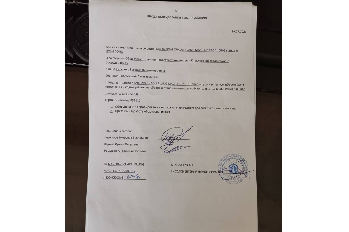 超力卷板機制造企業(yè)一批卷板機設備出口俄羅斯, 順利完成調試并成功交付,獲得了客戶(hù)的高度贊譽(yù)?。